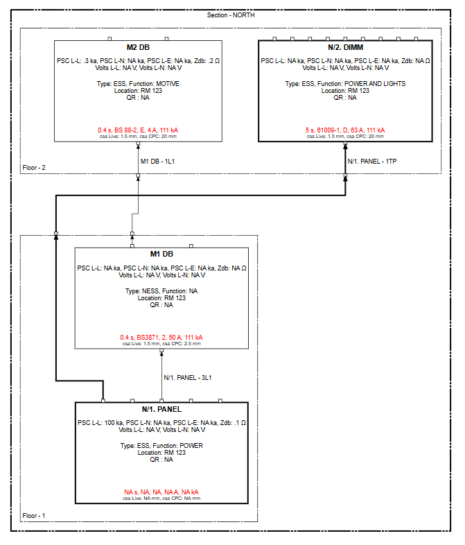 M2 DB is located in Section: NORTH, Floor: 2, and is supplied from M1/DB [1L1]