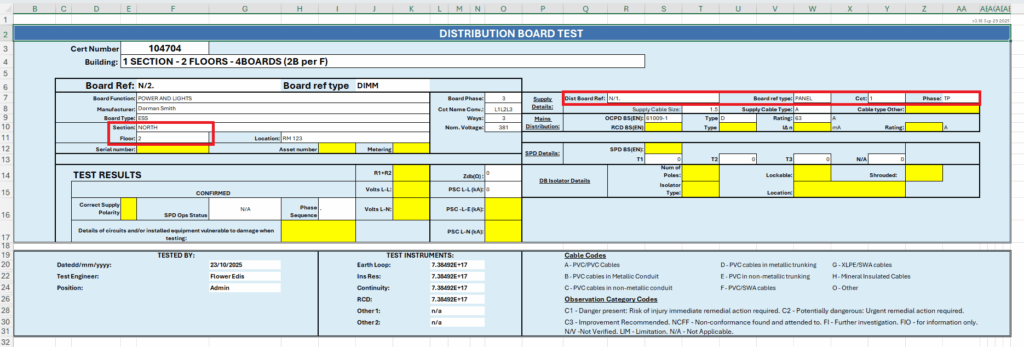 6. After uploading the excel worksheet, AND completing the certificate, the distribution board schedule will be updated along with the EDIS Schematic.