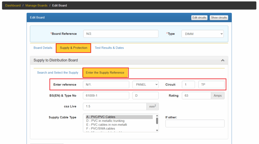 First, you need to tell the system where the distribution board is physically located in the building. This is done by specifying two details: